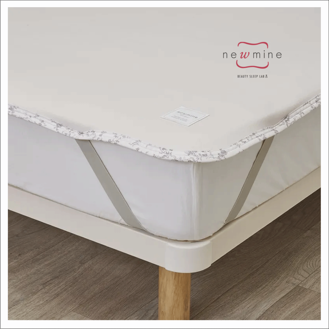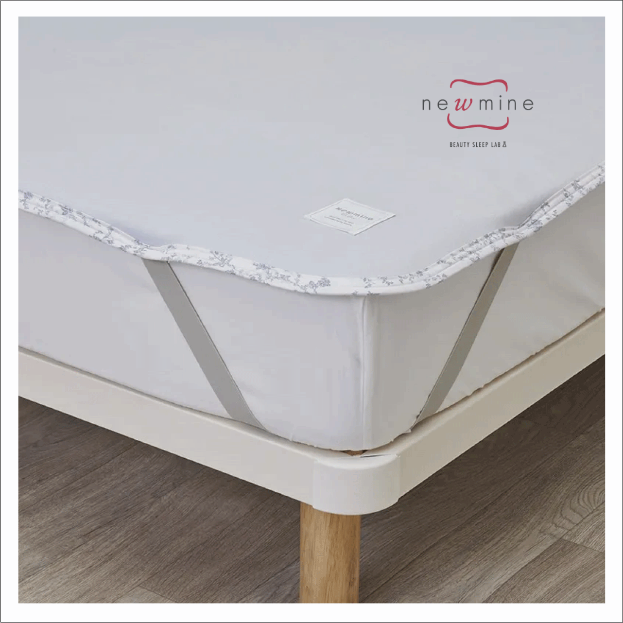 四隅にゴムがついており、敷きふとんやベッドマットレスに固定できます。